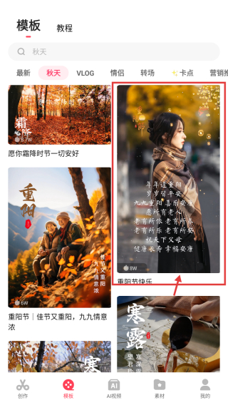 3、在秋天主题模板列表里,选择重阳节快乐模板条目,进入模板详情页。
