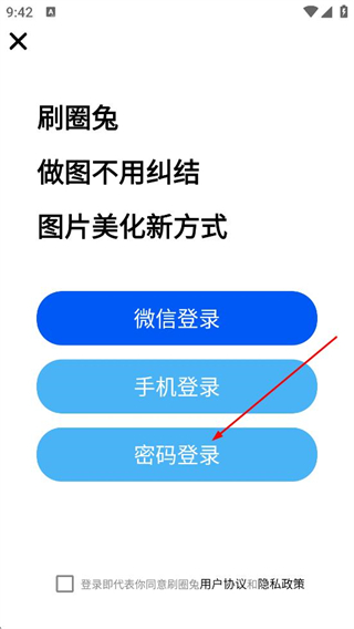 3、在登录选择页面,点击密码登录,切换至手机登录界面。