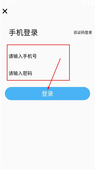 4、在登录界面,填写手机号和密码后,点击登录,完成账号登录。