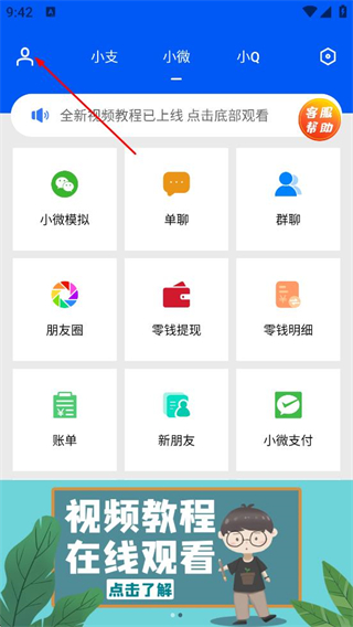 2、在应用页面,点击左上角的头像图标,进入登录选择页面。