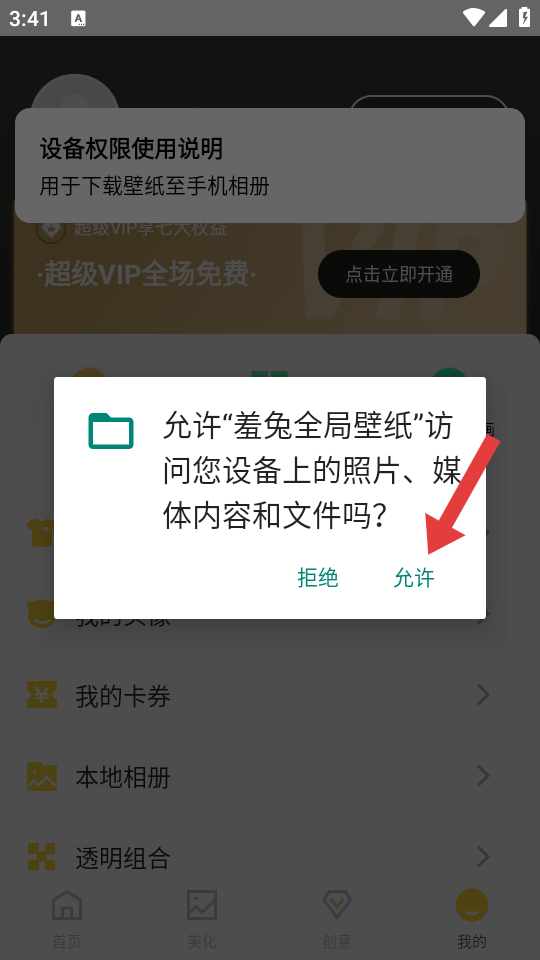 2、弹出允许权限请求框时,我们需要点击允许,授予应用访问本地相册的权限。