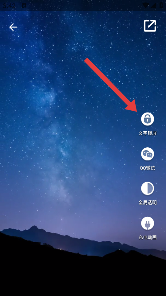4、在壁纸预览页面,点击右侧功能栏中的文字锁屏按钮,可以将选中的图片/视频设置为锁屏壁纸。