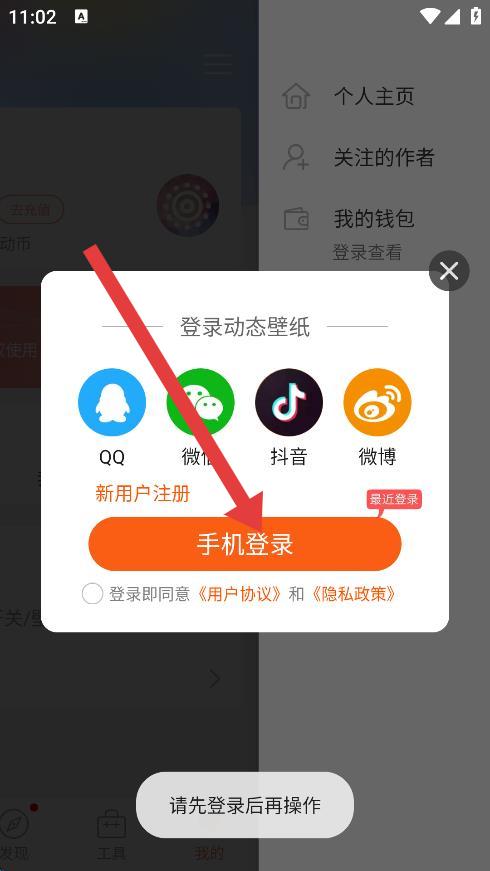 3、在弹出的登录动态壁纸界面,选择手机登录。