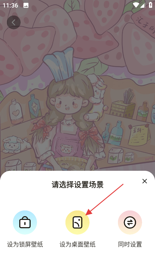 3、在壁纸详情页面,点击设为壁纸,弹出设置场景选择框。