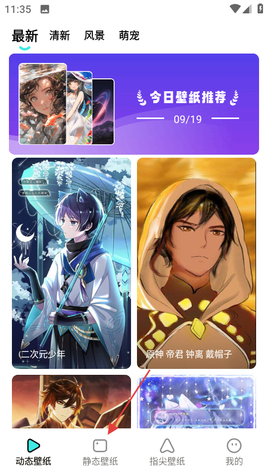 1、在首页点击底部静态壁纸,进入静态壁纸页面。