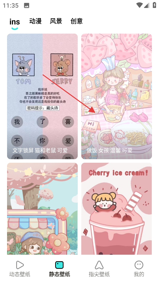 2、在静态壁纸页面,选择喜欢的壁纸,进入壁纸详情页面。