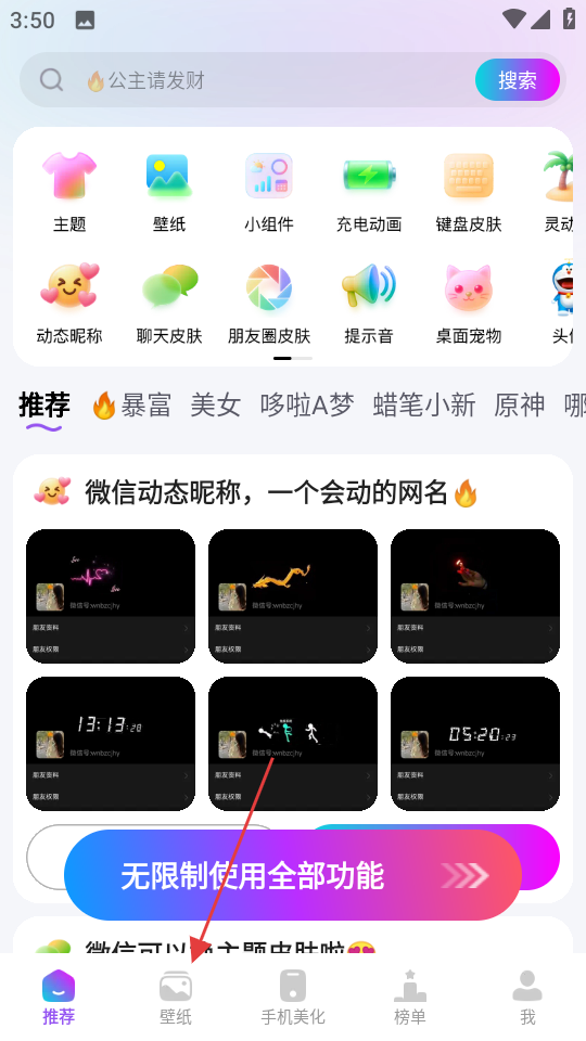 1、在365壁纸首页底部页面点击壁纸,进入壁纸页面。