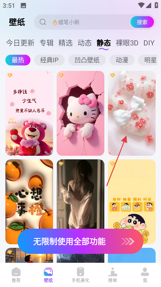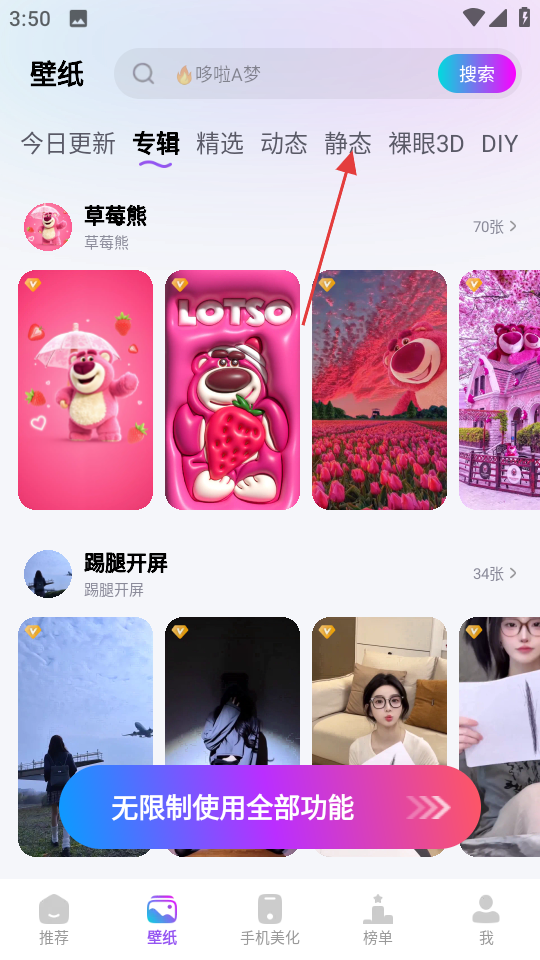 2、在壁纸页面选择静态分类,进入静态壁纸页面。