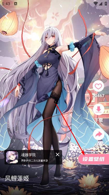 4、在壁纸详情页,点击设置壁纸,可将该壁纸设置为手机壁纸。