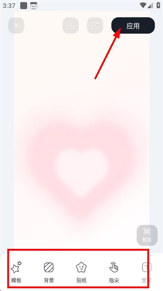 4、在模板编辑页面,使用工具完成编辑后点击应用,即可应用该DIY壁纸。