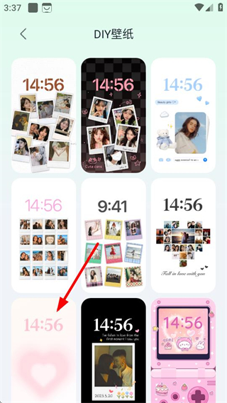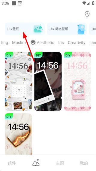2、在壁纸页面,点击DIY壁纸选项,进入DIY壁纸模板列表页面。