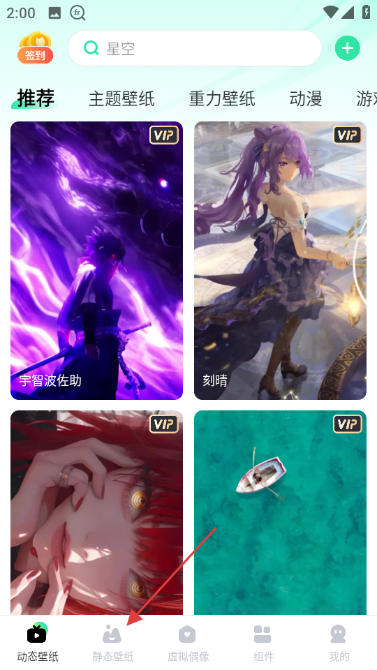 1、在动态壁纸页面,点击底部的静态壁纸,进入静态壁纸页面。