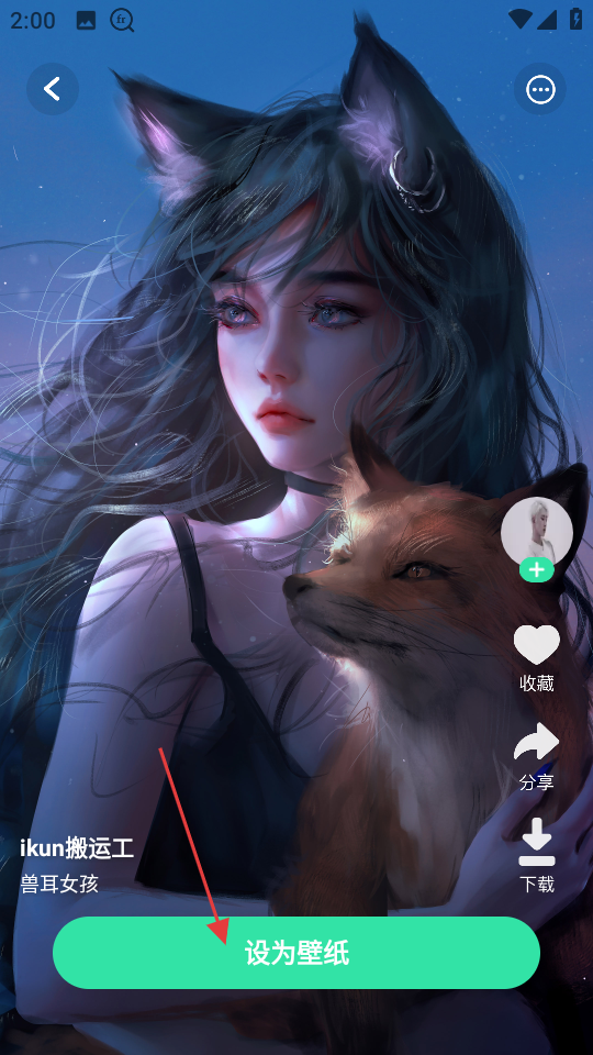 2、在静态壁纸页面,选择喜欢的壁纸如兽耳女孩,进入该壁纸详情页。