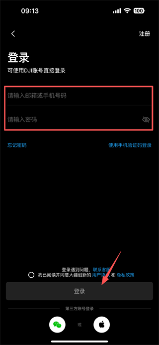 4、在密码登录页面,输入邮箱或手机号码和密码后,点击登录按钮,完成账号登录操作。