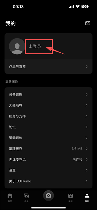 1、打开DJI-MIMO,点击底部我的选项,进入个人中心页面。