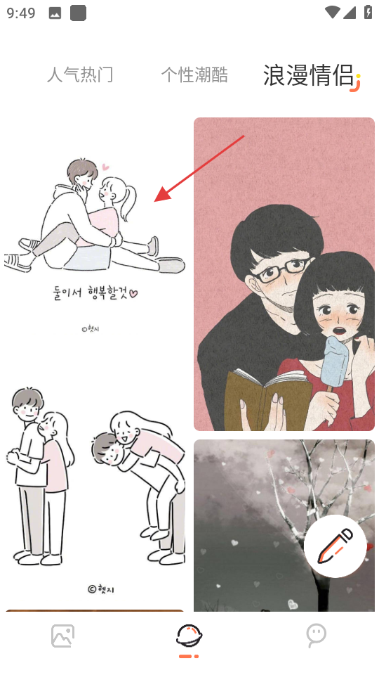 3、在浪漫情侣内容展示中,选择喜欢的图片,进入图片详情页。