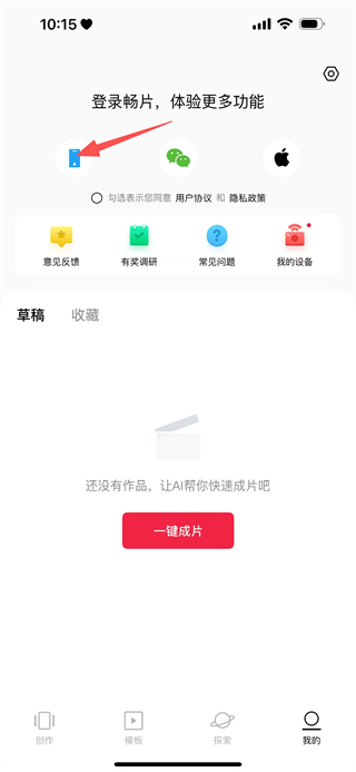 2、在个人页面,点击手机图标样式的登录入口,弹出登录选项弹窗。