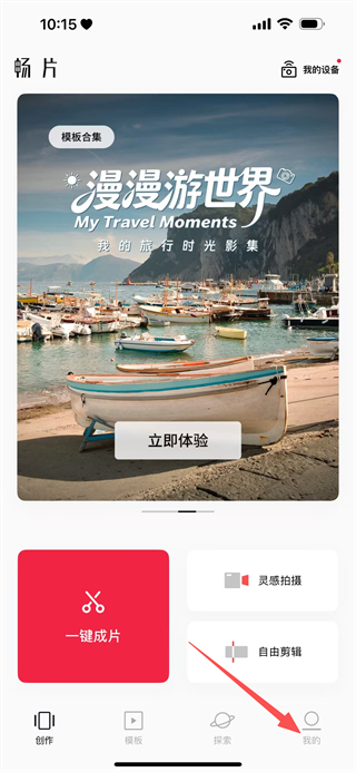 1、在畅片的首页,点击底部我的,进入个人页面。