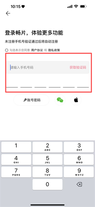 4、在手机号登录页面,输入手机号码,点击获取验证码,输入验证码后完成登录操作。