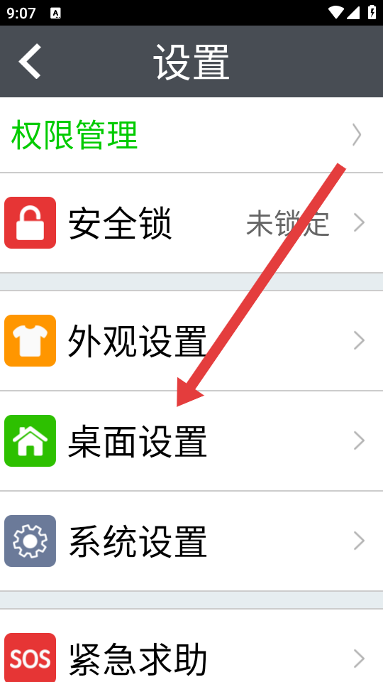 2、在设置页面中,找到并点击桌面设置的选项,进入桌面设置界面。