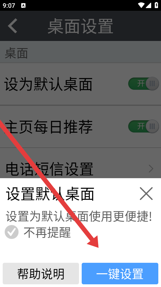 3、在桌面设置的页面,找到设为默认桌面选项,需要点击其右侧的开关。
