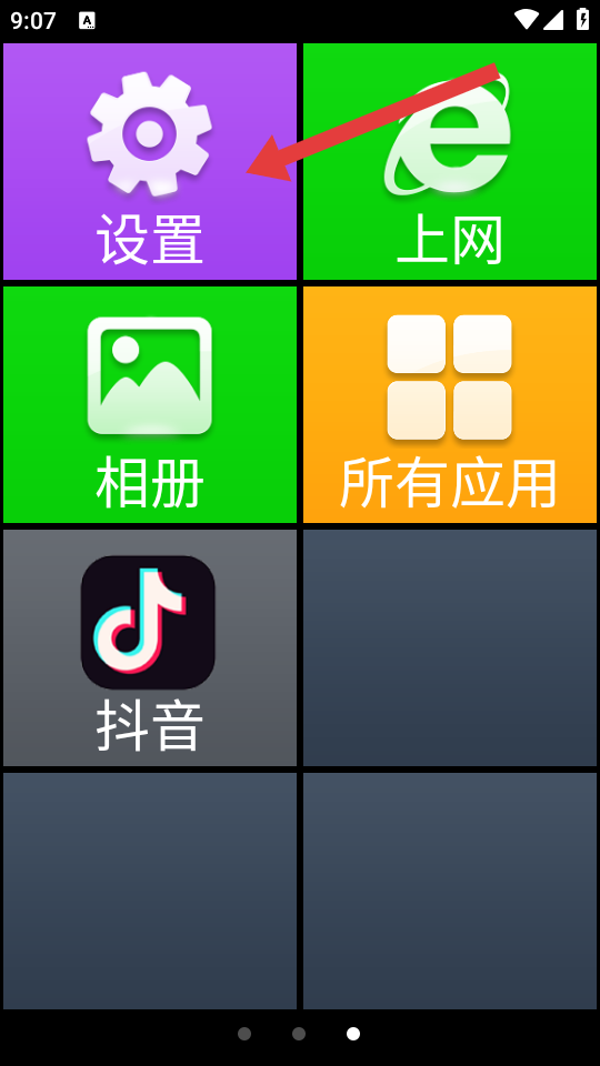 1、在如意老人桌面的主界面,点击紫色背景的设置图标,进入设置的页面。