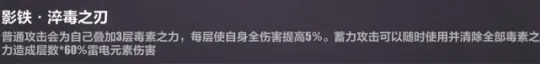 唯一和宠物没有任何关系的专属buff,可以通过自身平A来增加全伤,也是一个非常强力的buff,但因为使用蓄力后会清空【毒素之力】,在实际使用中要注意输出节奏。