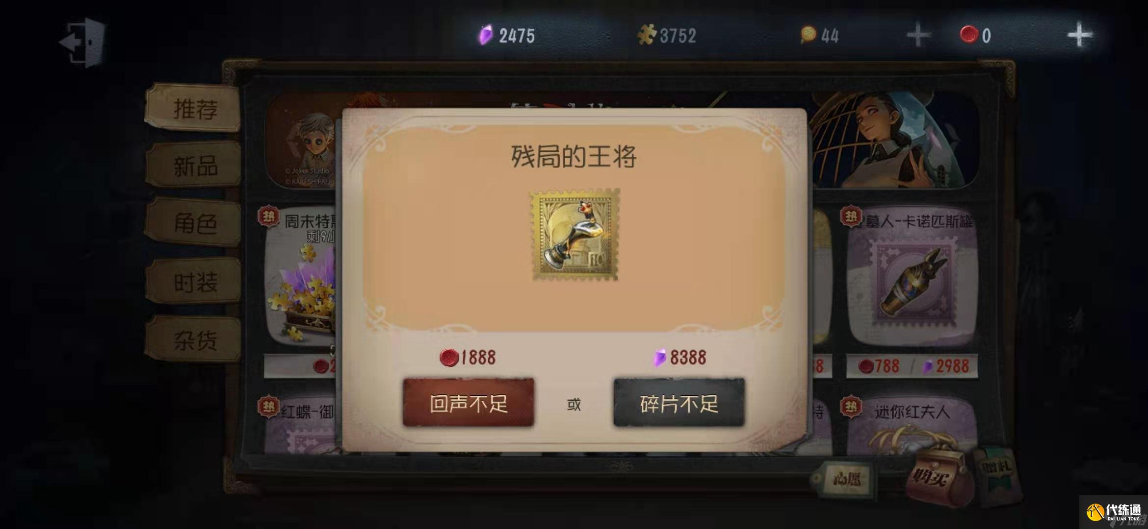 残局的王将是第五人格监管者雕刻家的随身物品,那第五人格稀世物品残局的王将怎么得?下面小编就为玩家分析这个道具的获取途径以及是否值得购买。