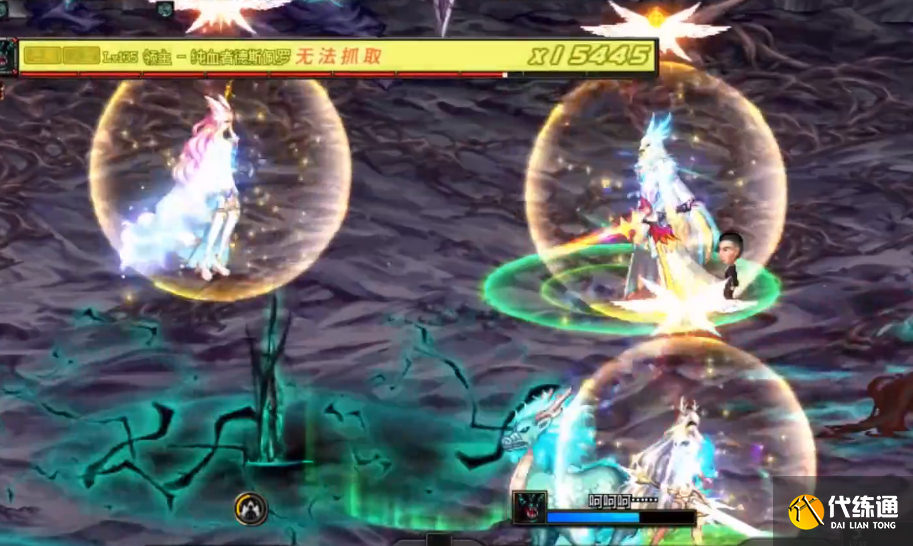 还有一个机制,会在每名玩家脚底下出现白色或者蓝色光圈的提示,并会向下发射箭矢,会对应相应的颜色圈。当三个一样颜色的圈子重合时,便会出现蓝色光球。这时把球推向boss即可,当不同颜色光圈相交,便会消失。