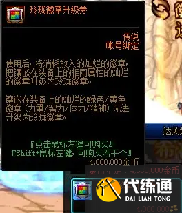 另外,在西海岸的达芙妮处可花费400万金币购买玲珑徽章升级券,将角色装备上已有的灿烂徽章与领取的徽章结合升级为当前版本最强的玲珑徽章,或直接用领取的两个灿烂徽章升级为一个玲珑徽章。