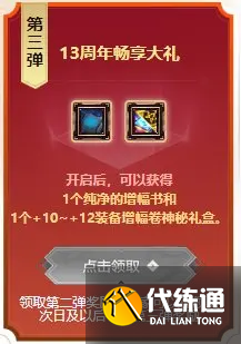 周年庆登陆第三弹奖励为一本纯净的增幅书和一个10~12增幅券随机礼盒,用助手冰某雨的话来说就是“最高可获得+12增幅券”