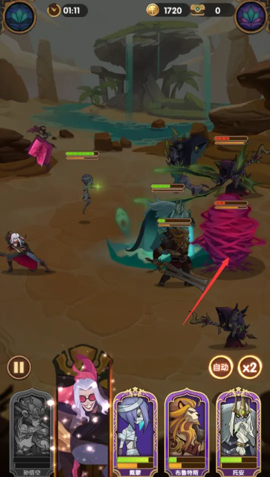 小编目前用的阵容,可以说是非常的混乱,老骸骨、狮子、戴蒙、猴子、海姆达尔,勉强凑一个阵容的buff,连个奶妈都没有,全靠前排硬抗。