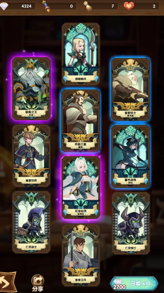 在第一天中,小编冲到了5-20的关卡,而第二天也是获得了一些资源,还进行了一波十连抽,也是获得了2张紫卡,运气还是不错的。