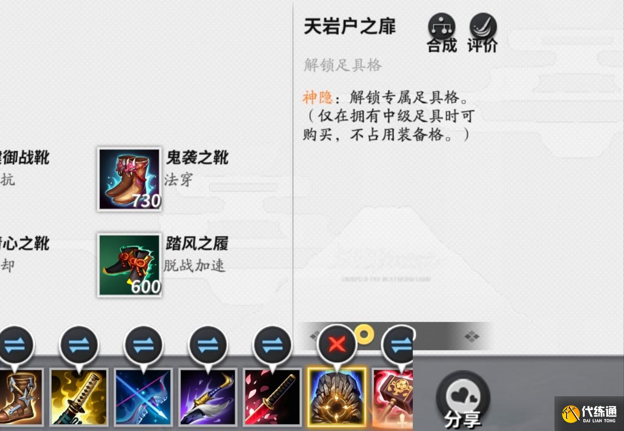 天岩户之扉可以解锁专属的足具格,可以在后期为足具增加一个专属格并且不占用装备格。