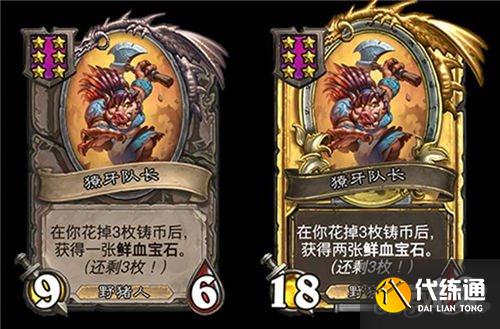 3星4/3,野猪人,战吼,亡语:获得一张鲜血宝石。(金色各获得两张)
