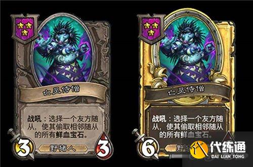 3星3/3,野猪人,战吼:选择一个友方随从,使其偷取相邻随从的所有鲜血宝石。