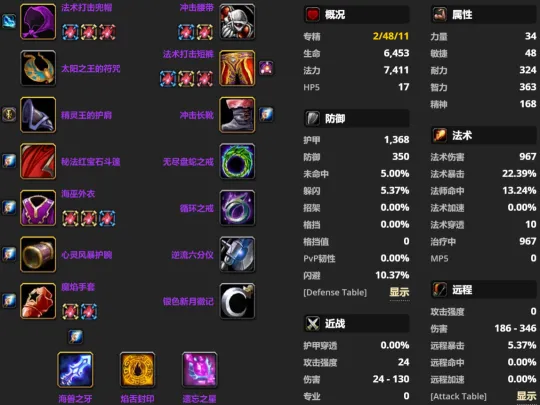 火法与奥法几乎完全不同,在下面这套配装中默认了玩家选择裁缝专业,因此依旧保留了法术打击套装,而且没有用到任何一件T5。