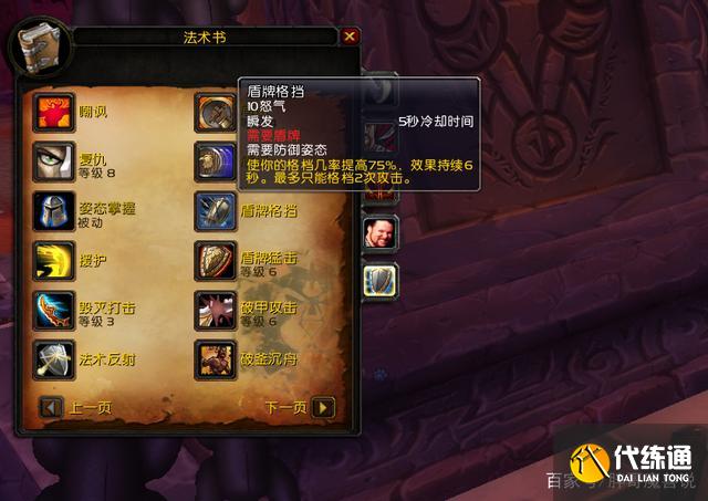 盾牌格挡是防战的常规减伤技能,效果是提升70%的格挡几率,持续6秒,天赋强化之后可以格挡2次。在正常情况下,为了获得更多的免伤,防战都会选择卡CD使用这个技能,哪怕会触发BOSS的招架加速也不得不用,不过盾牌格挡是需要怒气的。