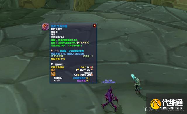 强化雄鹰守护的效果是远程平射有10%的几率获得15%的急速加成,15%急速看似不高,其实已经和算盘的特效差不多了。按照1%急速=15.8急速等级来计算,这15%急速相当于237点急速等级。