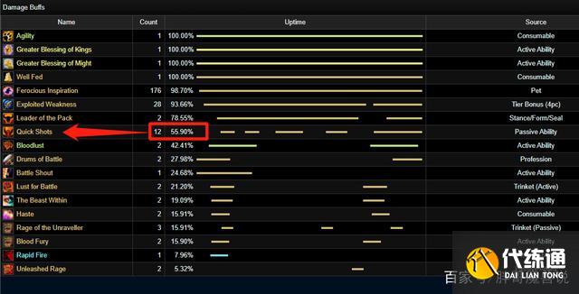 如果强化雄鹰守护的触发很低也就罢了,问题在于这个天赋的触发几率非常高,在WCL上随便找一个战斗数据都可以看到,强化雄鹰守护的覆盖率平均值为50-60%,即便是按照50%来计算,也相当于常驻7.5%的急速了,相当于118.5的急速等级。