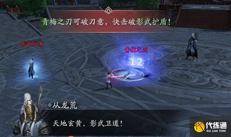 招式二名为“天地玄黄,影武卫道”,从龙荒会召唤“影武分身”和“青梅之刃”,普通难度是3个分身,困难南宁是4个分身,“青梅之刃”是直接伤害,分身会用招式一“漫天花雨”造成大范围伤害,这招破解的方法是利用和引诱“青梅之刃”去破解“影武护盾”,集中力量把“影武分身”击杀。