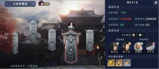 93级开放天波府至247层,在没有减低难度的情况下想要打通差不多得16W+,不过也不用着急,可以慢慢的等削弱然后再去打。