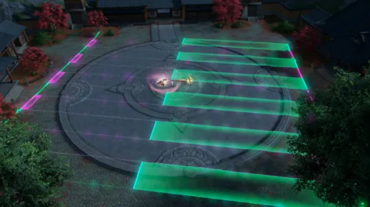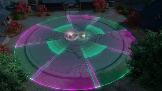 >>攻略:走位及翻滚躲避范围伤害,不同范围的技能触发时间会有时间差,不要被满屏的预警吓到了,注意利用时间差规避伤害。