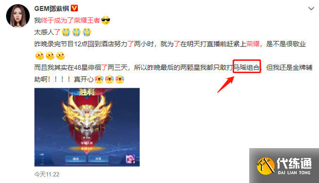 说回邓紫棋的荣耀王者段位,虽然用的是辅助,但是用辅助打到荣耀王者段位的玩家,你可以说他们可能没有特别高超技术水平,比如手速和反应速度并不快,但不代表他们就没有荣耀王者的实力,特别是辅助这个位置,这个位置本身就不需要你有多高超的技术,而在于你的意识,只要你的意识好,也可以把辅助这个位置玩得比较好,甚至也是可以充当一个带飞队友的角色,而意识也是实力的一部分。