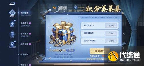 积分爆爆爆的活动时间是8月17日~8月23日,活动位置入口在游戏内活动图/活动面板。