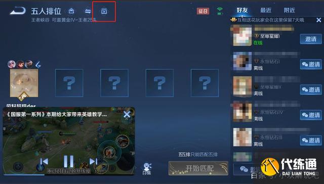 第一个方案就是在大家等待界面的最上方有一个小窗口存在,点击这个小窗口就能看到全王者相关的内容,内容是根据大家的常用英雄及偏好个性化推荐不同的视频,还有好友公开的精彩视频;在比赛中期间还会推荐实时赛事直播给大家观看。该窗口只出现在王者内不影响其他软件,支持大家拖动位置调节大小,大家不用担心会遮挡自己的好友邀请。