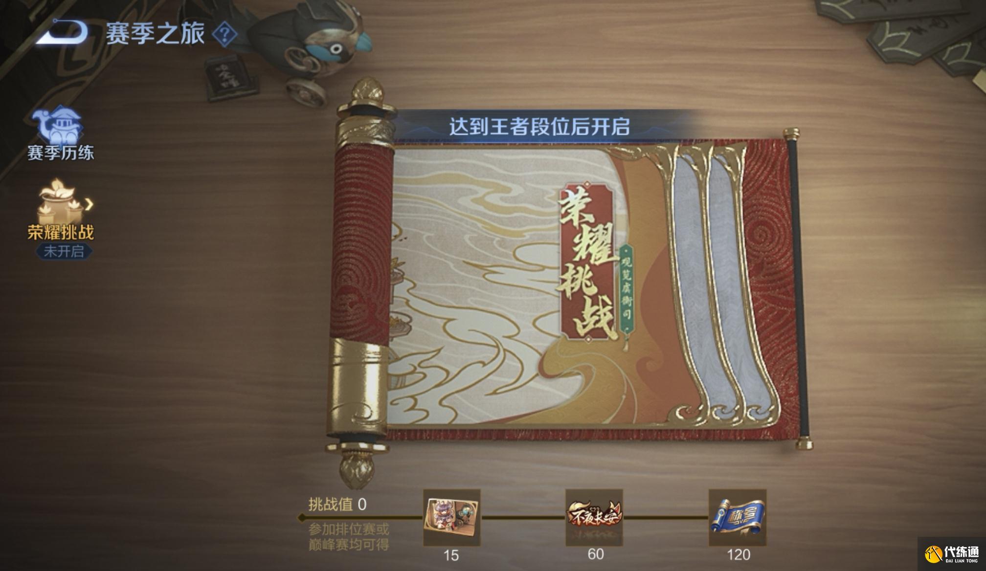 1.召唤师本赛季挑战值达到15:可以领取个人主页装扮-长安密探的奖励。