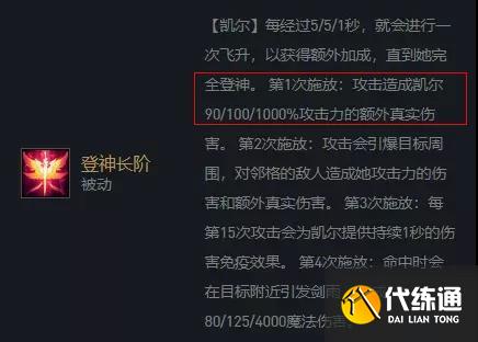 天使第一次飞升就能附带百分比AD加成的真实伤害,这就是AD天使的打法核心,飓风杀人剑带来的高攻击力可以不再依赖登神打伤害,并且天使11.17还有一波大加强,生命值提高攻速提高,后期强度非常可怕!