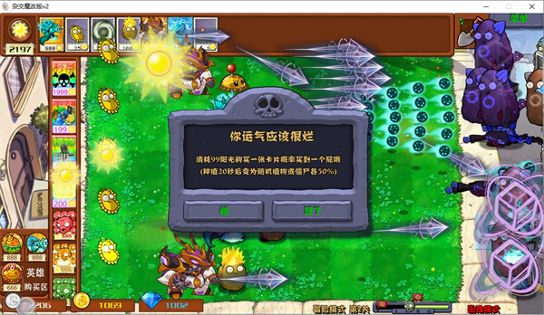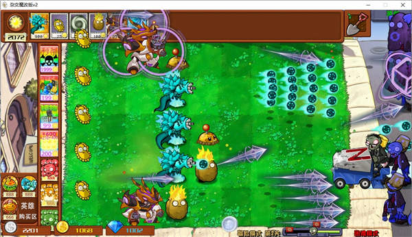 2、英雄购买区也可以购买各种强大的植物,只要有足够的阳光,就可以随意的购买植物,开启乱战;