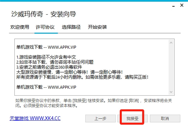 2、然后就可以看到安装的一些协议,了解之后点击下方的【我接受】;